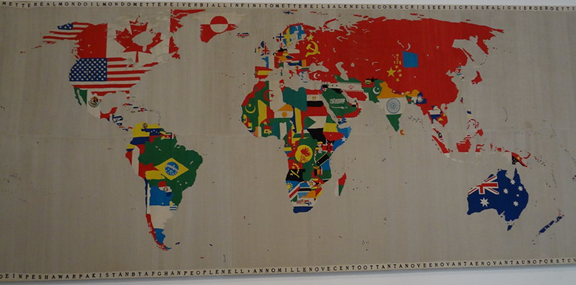 Alighiero Boetti explorava a colaboração e o acaso em suas obras. Em Mappa, ele pediu que bordadeiras de diferentes países criassem mapas-múndi bordados, representando as bandeiras dos países. O resultado é uma arte que discute política, globalização e identidade cultural, unindo gesto artesanal e pensamento conceitual.