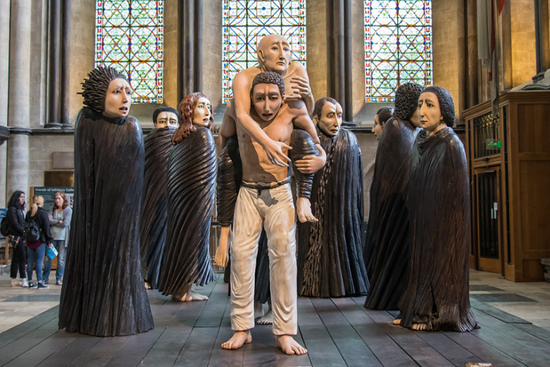 Suas esculturas, muitas vezes em tamanho real ou monumental, parecem encenar histórias, rituais ou dramas da vida.