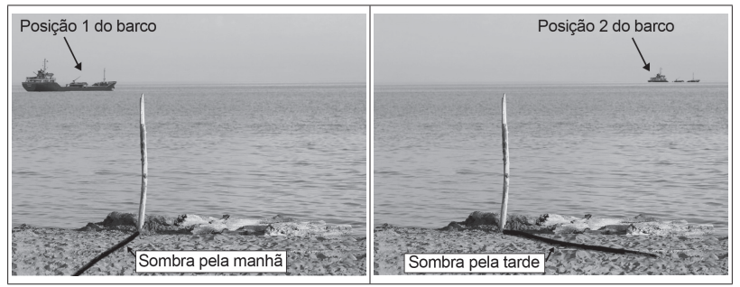 A diferença observada nas sombras da estaca nessas duas imagens é consequência do movimento da Terra denominado