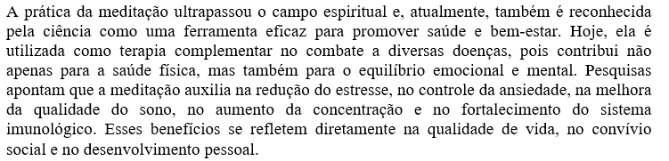 ( ) A meditação ainda é vista apenas como uma prática espiritual.