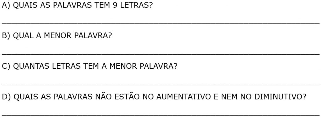 LEIA AS PALAVRAS NO QUADRO ABAIXO E CIRCULE DE VERDE AS QUE ESTÃO NO AUMENTATIVO.