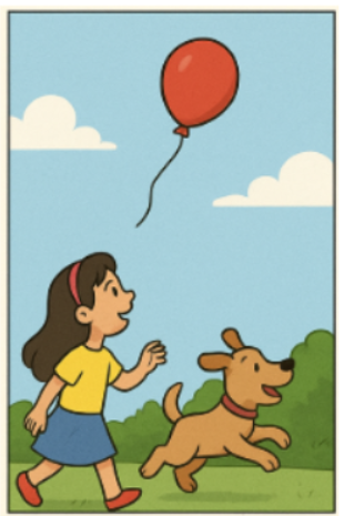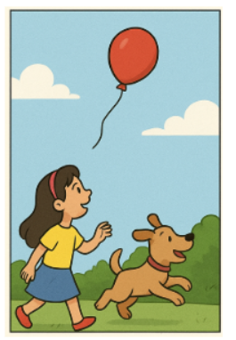 Então, chamou seu cachorro Pipoca para ajudá-la. Com muitas tentativas e pulos, Pipoca conseguiu soltar o balão, que voou alto pelo céu. Lila ficou feliz, mas percebeu que não poderia segurá-lo para sempre.