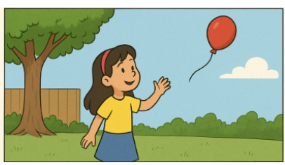 (A) Lila ficou chorando porque perdeu o balão no ar.