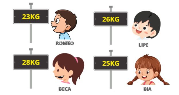 OBSERVE NAS BALANÇAS A MASSA DE CADA CRIANÇA.