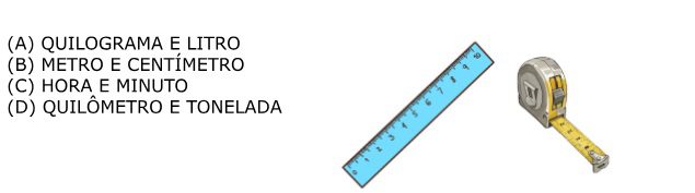 | Descritores: | D084-MIdentificar instrumentos utilizados para medir as grandezas tempo, comprimento, massa e temperatura. D020-MEstimar a medida de grandezas utilizando unidades de medida convencionais ou não. |