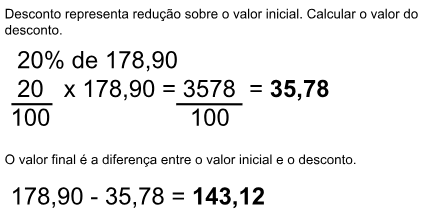 Exemplo 3: Na loja Bom Preço, uma jaqueta que custava R$178,90 está com 20% de desconto. Qual será o novo preço da jaqueta?