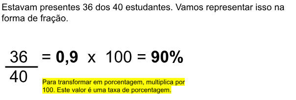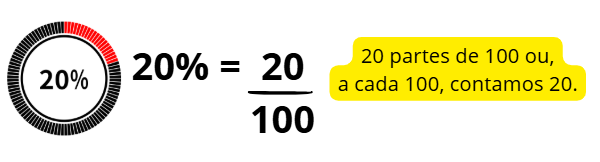 Porcentagem é uma forma de representar partes de 100 em que algo foi dividido.