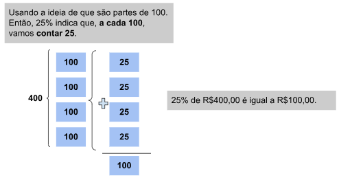 | HABILIDADES: | (EF05MA06-B) Associar as representações 10%, 25%, 50%, 75% e 100%, respectivamente, à décima parte, quarta parte, metade, três quartos e um inteiro, para calcular porcentagens, utilizando estratégias pessoais, cálculo mental e calculadora, em contextos de educação financeira, entre outros. (EF05MA06 – C) Solucionar problemas envolvendo cálculo de 10%, 25%, 50%, 75% e 100%, utilizando diferentes estratégias de resolução, enfatizando o cálculo mental. |
