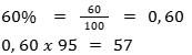 3. Dos 95 estudantes de uma escola, 60% gosta de praticar esportes. Qual é o número de estudantes que gostam de praticar esportes?