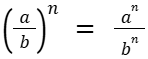 E) Potência de quociente: o expoente se distribui em relação ao quociente.