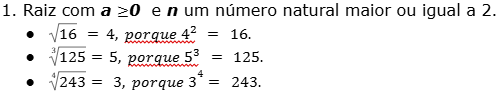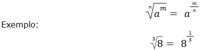 3. A raiz de um número corresponde à potência de um base elevada a expoente fracionário.