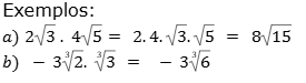2. Multiplicação: considerando a propriedade da multiplicação, efetuar essa operação entre radicais com o mesmo índice.