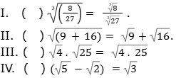 Considerando as propriedades dos radicais, classifique as sentenças a seguir em (V) verdadeiras ou (F) falsas.