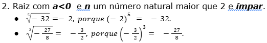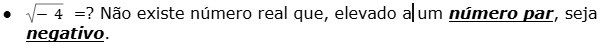 Vale lembrar que não tem solução real para as raízes de índice par de número negativo.