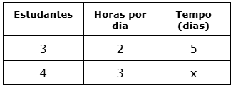 - “Tempo para concluir o trabalho” com “horas de trabalho por dia” também são grandezas inversamente proporcionais. Isto porque, menos dias para concluir a tarefa mais horas de trabalho diário serão necessárias.