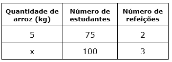 Para fazer o lanche na escola, a cozinheira gasta 5kg de arroz para servir 2 refeições para 75 estudantes. Quantos kg de arroz serão necessários para servir 100 estudantes em 3 refeições?